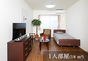 | 備え付け設備 | 電動ベッド、照明器具、洗面化粧台、暖房便座付洋式トイレ、エアコン、テーブル、椅子、チェスト、クローゼット、下足入れ、防炎カーテン、ナースコール、スプリンクラー、地デジ受信可能、IH※、浴室※ ※2人部屋(7室)のみの設備です。そのうち4室に浴室が完備されています。 ■家具の持ち込み可。応相談。 |